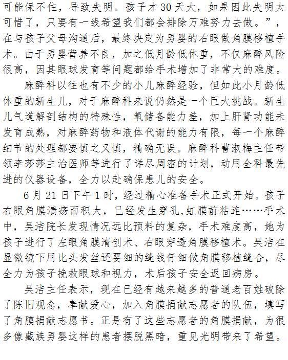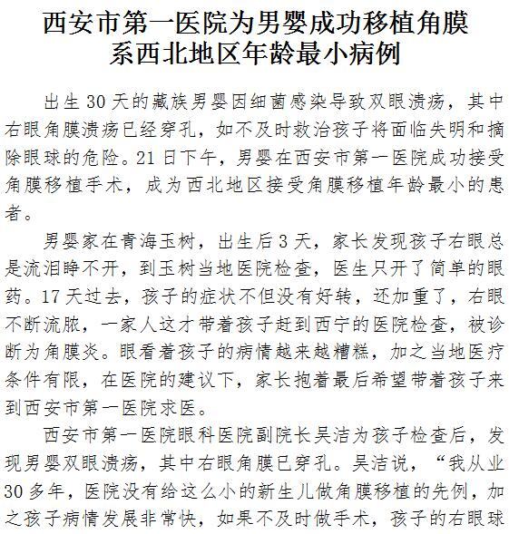 男同视频 完成首例西北地区年龄最小病例角膜移植术
