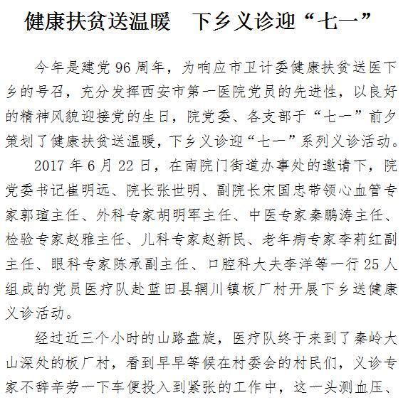 健康扶贫送温暖 下乡义诊迎“七一”