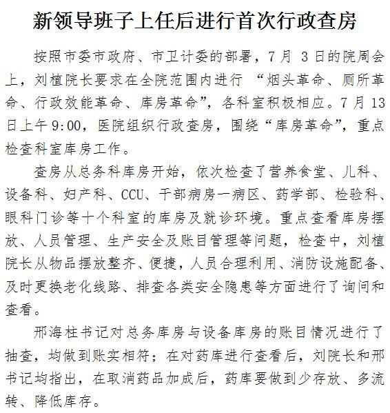 新领导班子上任后进行首次行政查房