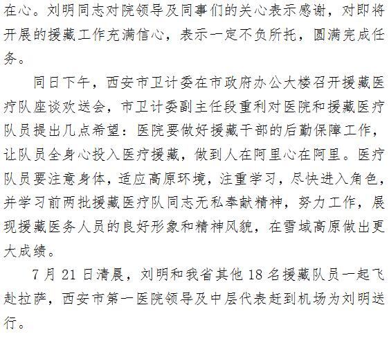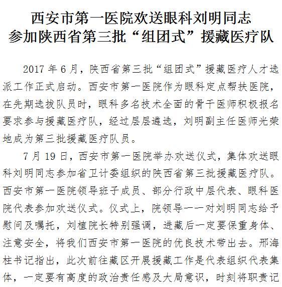 男同视频 欢送眼科刘明同志参加陕西省第三批“组团式”援藏医疗队
