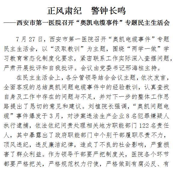 正风肃纪 警钟长鸣 ——男同视频 召开“奥凯电缆事件”专题民主生活会