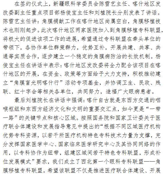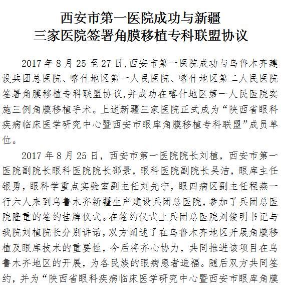 男同视频 成功与新疆三家医院签署角膜移植专科联盟协议