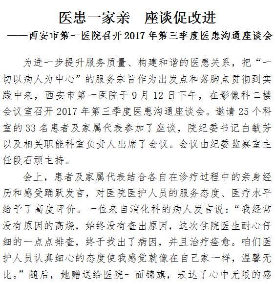 医患一家亲 座谈促改进 ——男同视频 召开2017年第三季度医患沟通座谈会