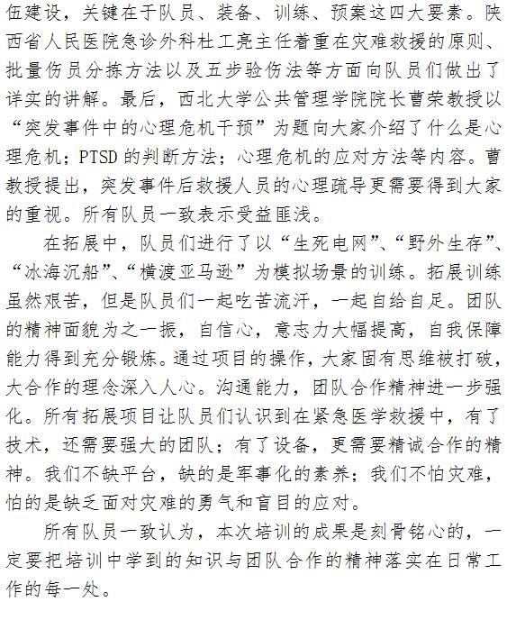 男同视频 派员参加国家及省市级紧急医学救援队员实战技能培训班
