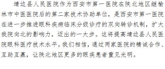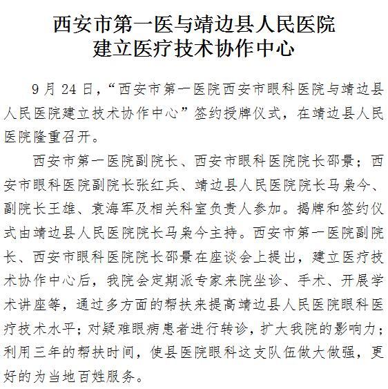 西安市第一医与靖边县人民医院建立医疗技术协作中心