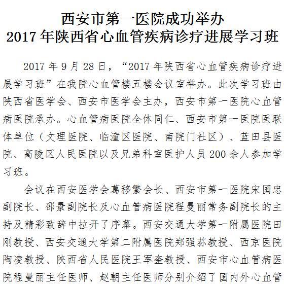 男同视频 成功举办2017年陕西省心血管疾病诊疗进展学习班