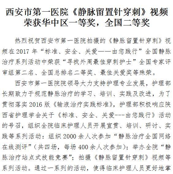 男同视频 《静脉留置针穿刺》视频荣获华中区一等奖、全国二等奖