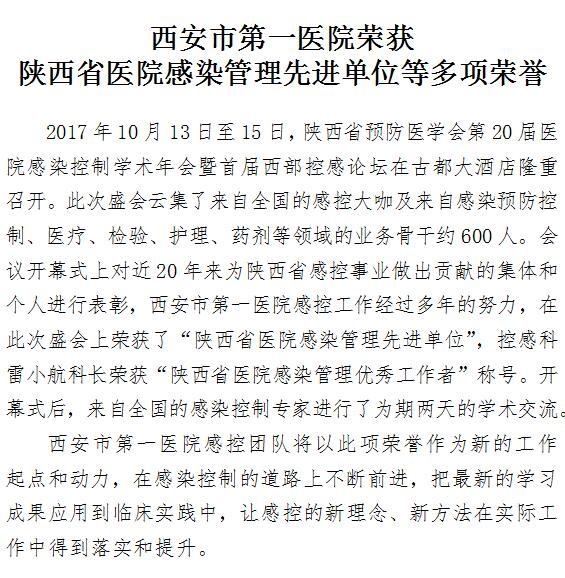 男同视频 荣获陕西省医院感染管理先进单位等多项荣誉