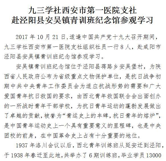九三学社男同视频 支社赴泾阳县安吴镇青训班纪念馆参观学习