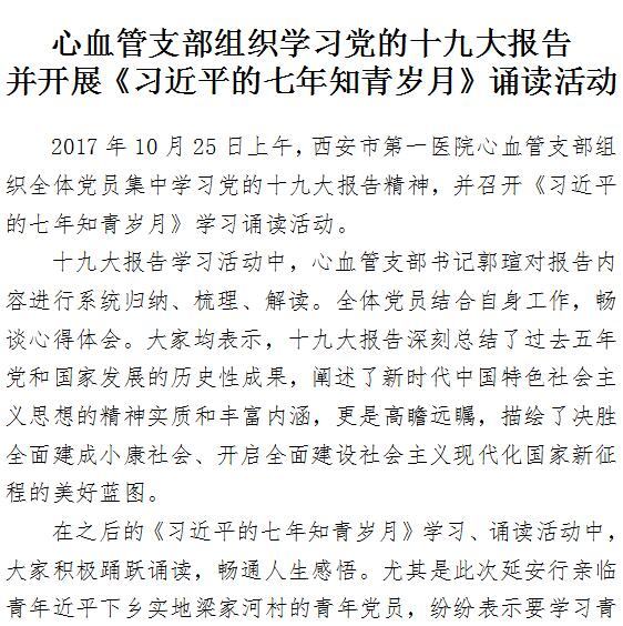 心血管支部组织学习党的十九大报告并开展《习近平的七年知青岁月》诵读活动