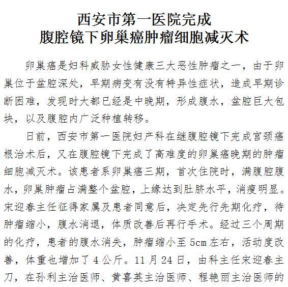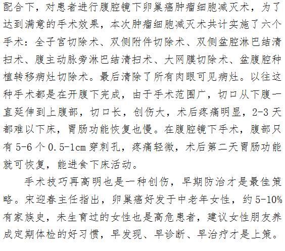 男同视频 完成腹腔镜下卵巢癌肿瘤细胞减灭术