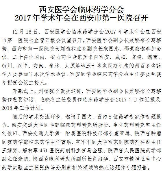 西安医学会临床药学分会2017年学术年会在男同视频 召开