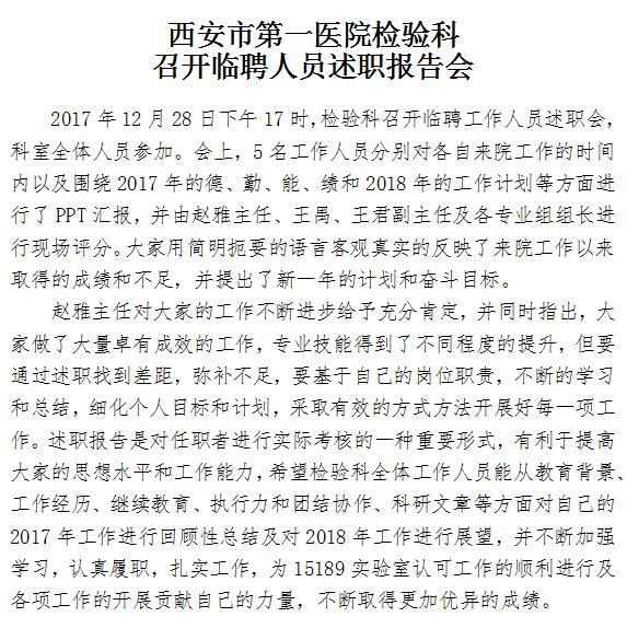男同视频 检验科召开临聘人员述职报告会