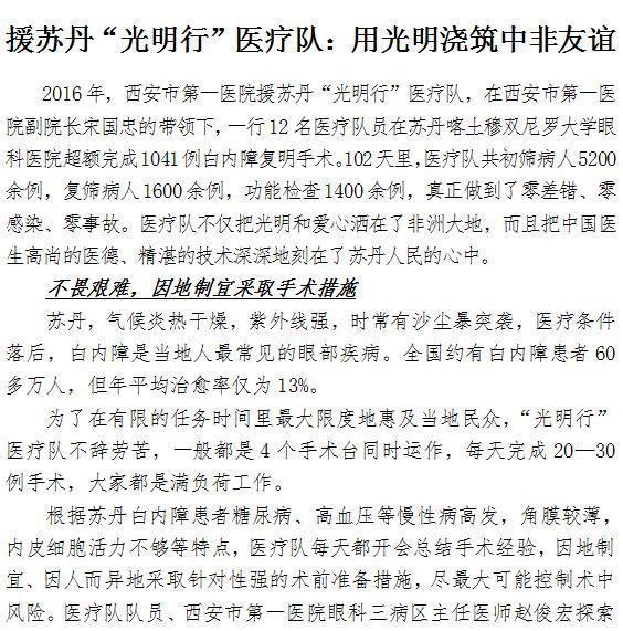 援苏丹“光明行”医疗队:用光明浇筑中非友谊