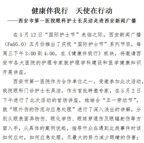 健康伴我行 天使在行动 ——男同视频 眼科护士长吴洁走进西安新闻广播