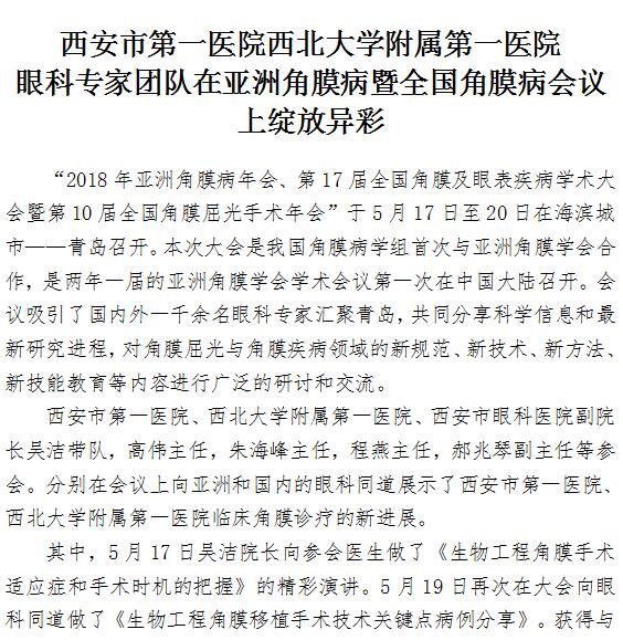 男同视频 西北大学附属医院眼科专家团队在亚洲角膜病暨全国角膜病会议上绽放异彩