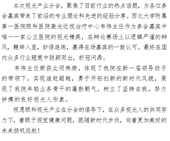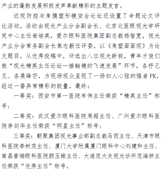 迈入新时代 关注眼健康 ——男同视频 韦伟主任斩获“目立康杯”视光精英主任华冠