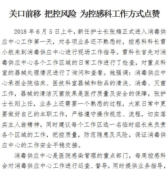 关口前移 把控风险 为控感科工作方式点赞