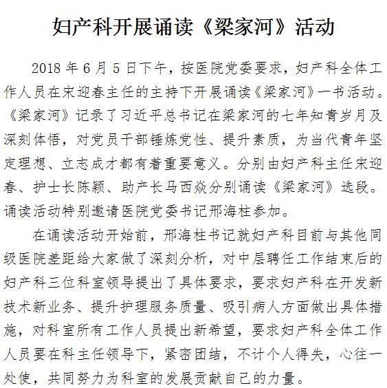 妇产科开展诵读《梁家河》活动