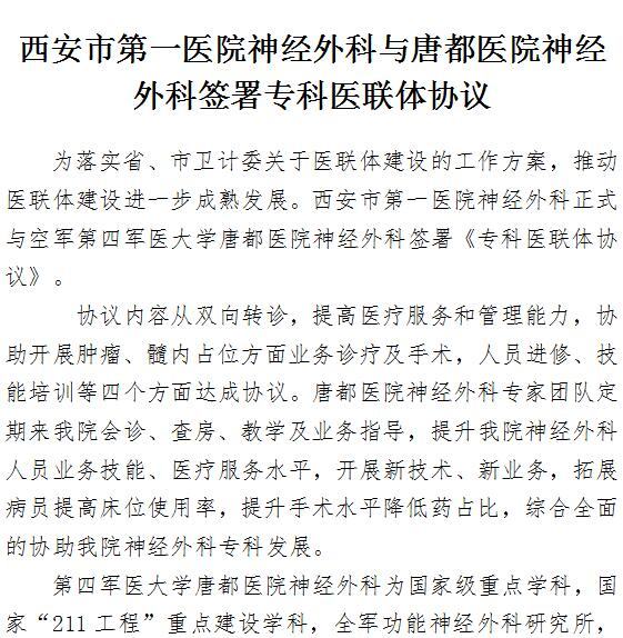男同视频 神经外科与唐都医院神经外科签署专科医联体协议