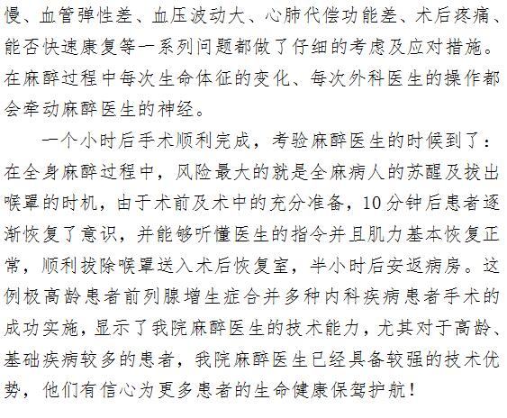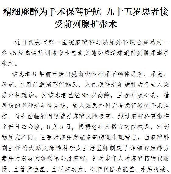 精细麻醉为手术保驾护航 九十五岁患者接受前列腺扩张术
