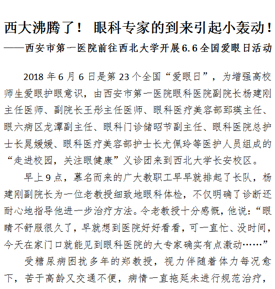眼科专家的到来引起小轰动! ——男同视频 前往西北大学开展6.6全国爱眼日活动