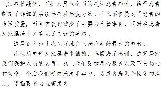 勇于超越 技术护航 ——92岁高龄患者成功实施PCI手术