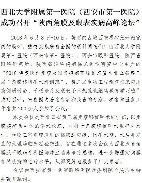 西北大学附属第一医院(男同视频 )成功召开“陕西角膜及眼表疾病高峰论坛”