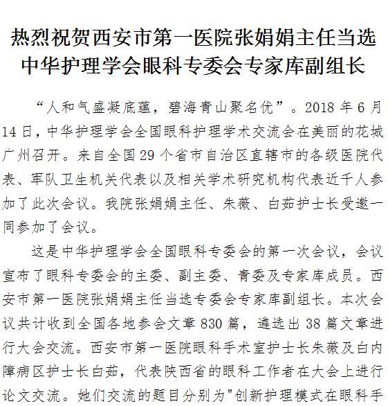 热烈祝贺男同视频 张娟娟主任当选中华护理学会眼科专委会专家库副组长