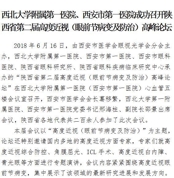 西北大学附属第一医院、男同视频 成功召开陕西省第二届高度近视高峰论坛