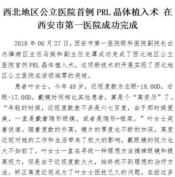 西北地区公立医院首例PRL晶体植入术 在男同视频 成功完成