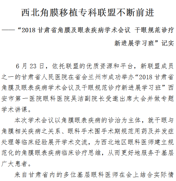 “2018甘肃省角膜及眼表疾病学术会议 干眼规范诊疗新进展学习班”记实