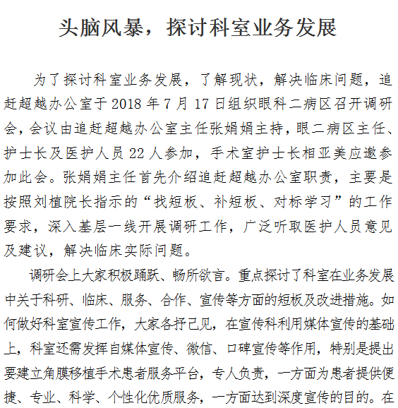 头脑风暴,探讨科室业务发展