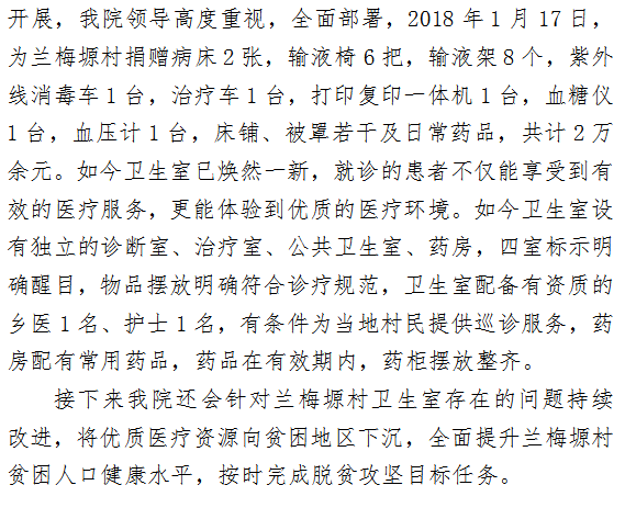 健康扶贫 我们在行动 —记男同视频 一院帮一村纪实