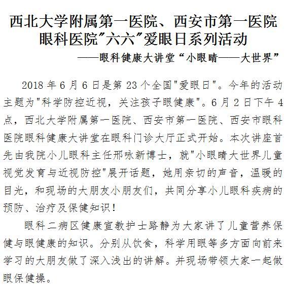 西北大学附属第一医院、男同视频 眼科医院"六六"爱眼日系列活动