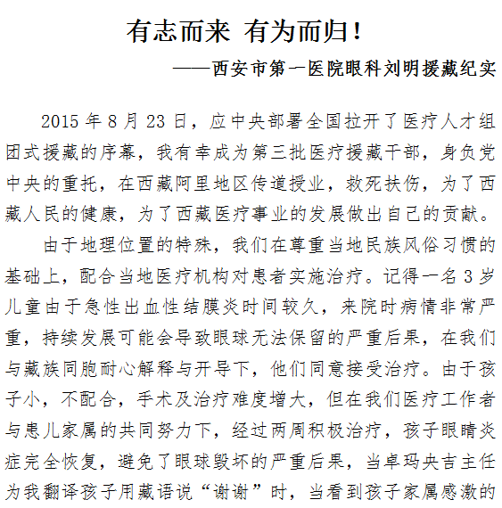 有志而来 有为而归! ——男同视频 眼科刘明援藏纪实