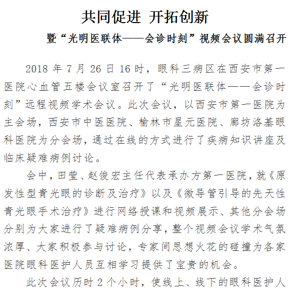 共同促进 开拓创新 暨“光明医联体——会诊时刻”视频会议圆满召开