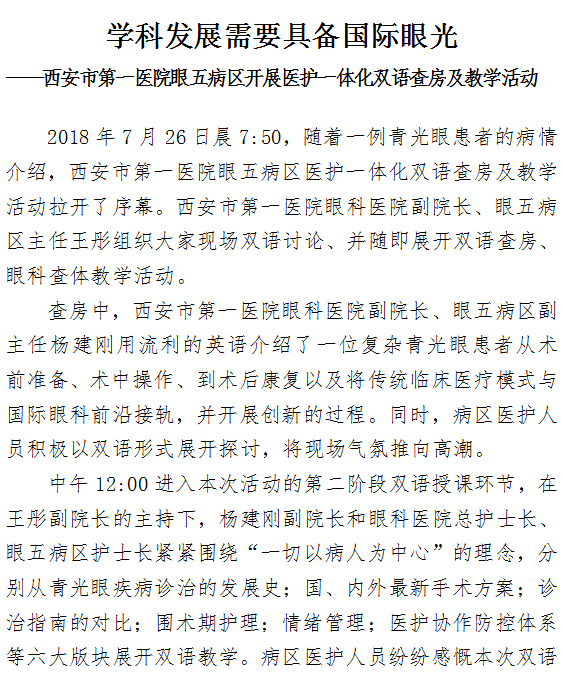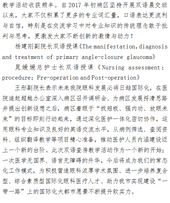 学科发展要具备国际眼光—男同视频 眼五病区开展医护一体化双语查房及教学活动