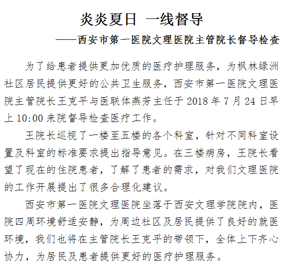 炎炎夏日,一线督导---男同视频 文理医院主管院长督导检查