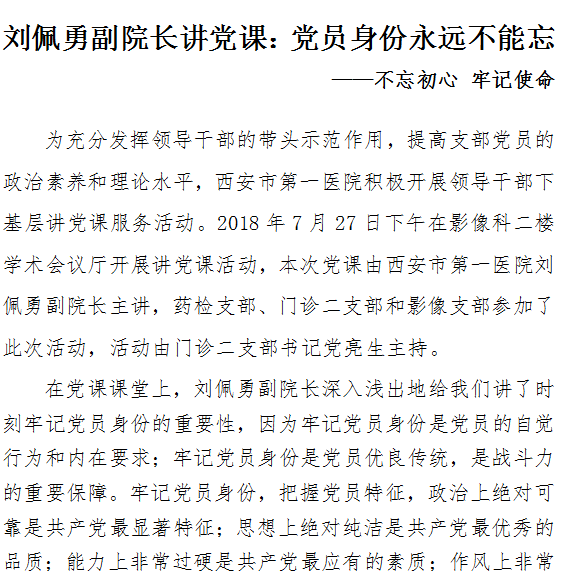 刘佩勇副院长讲党课:党员身份永远不能忘——不忘初心,牢记使命