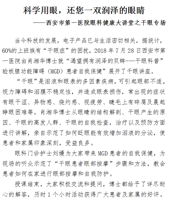 科学用眼,还您一双润泽的眼睛--男同视频 眼科健康大讲堂之干眼专场