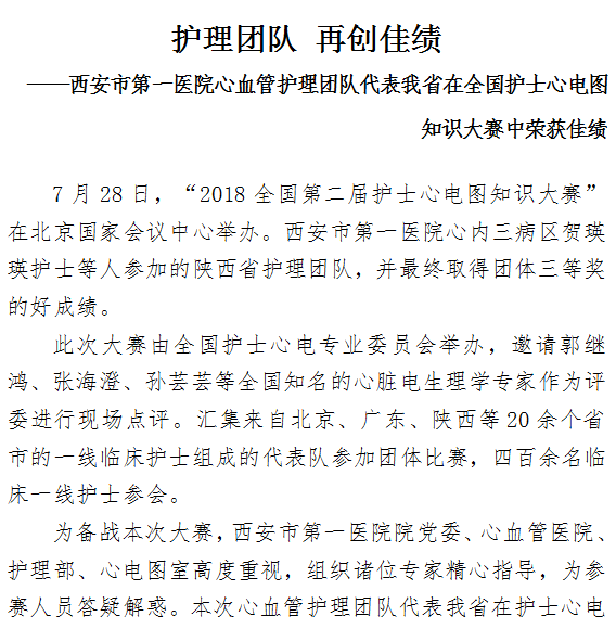 男同视频 心血管护理团队代表我省在全国护士心电图知识大赛中荣获佳绩