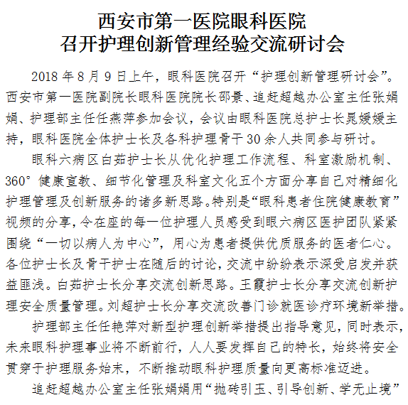 男同视频 眼科医院召开护理创新管理经验交流研讨会