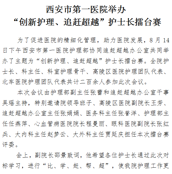 男同视频 举办“创新护理、追赶超越”护士长擂台赛
