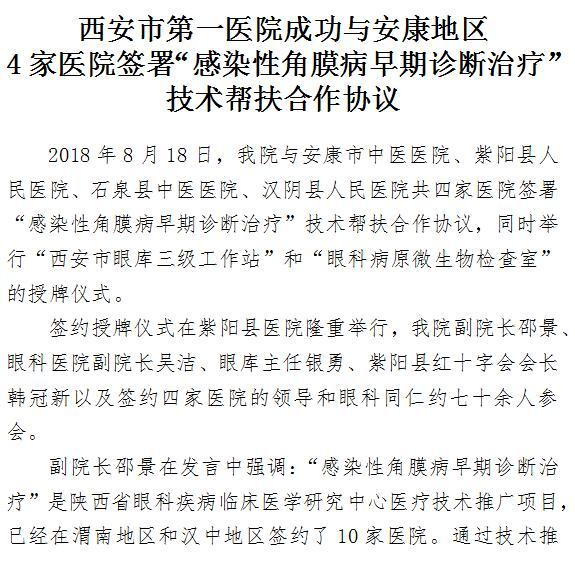 男同视频 成功与安康地区4家医院签署“感染性角膜病早期诊断治疗”技术帮扶合作