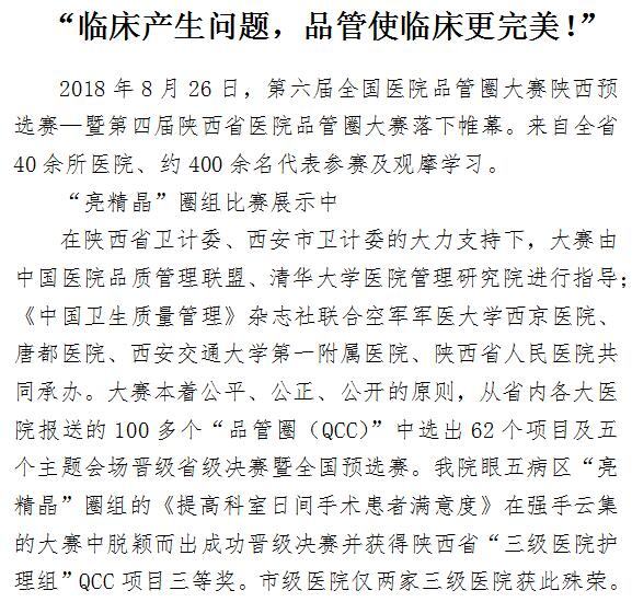 “临床产生问题,品管使临床更完美!”