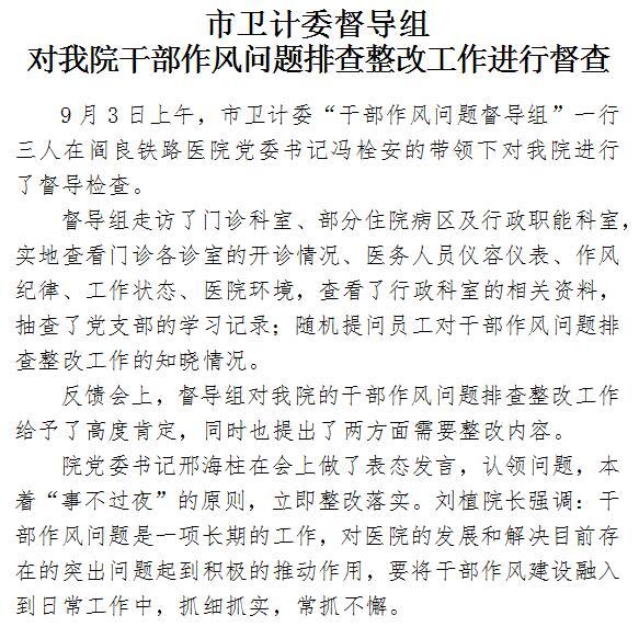 市卫计委督导组 对男同视频 干部作风问题排查整改工作进行督查