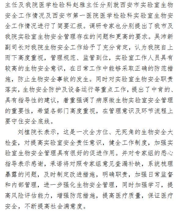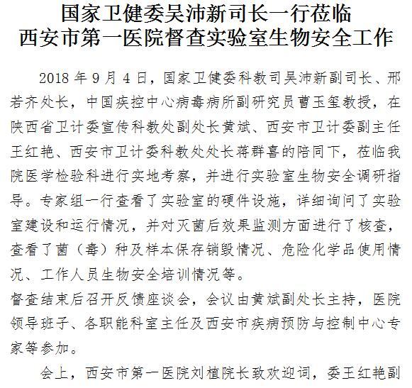 国家卫健委吴沛新司长一行莅临男同视频 督查实验室生物安全工作