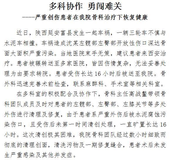 多科协作 勇闯难关----严重创伤患者在男同视频 骨科治疗下恢复健康