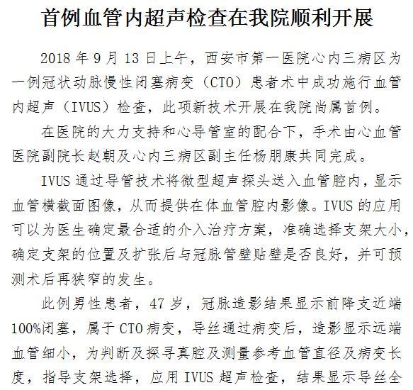 首例血管内超声检查在男同视频 顺利开展